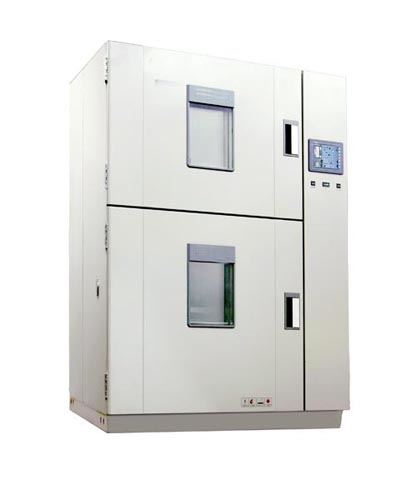MC028系列溫度沖擊試驗(yàn)箱  一、產(chǎn)品簡(jiǎn)介 用途:適用于對(duì)電工、電子和其他軍用設(shè)備在周圍大氣溫度急劇變化條件下的適應(yīng)性試驗(yàn)。 特點(diǎn): 1.充分吸收國(guó)外同類產(chǎn)品的優(yōu)點(diǎn),采用兩箱式上下結(jié)構(gòu),上箱體為高溫箱,下箱體為低溫箱。也可根據(jù)用戶要求設(shè)計(jì),制造左、右結(jié)構(gòu)的兩箱式溫度沖擊試驗(yàn)箱。也可以根據(jù)用戶要求采用單相式(或三箱式)結(jié)構(gòu)設(shè)計(jì)。 2.觸摸屏+PLC可編程邏輯控制器,RS485接口。 3.有工作室超溫、壓縮機(jī)過(guò)載、超壓、油壓超壓、風(fēng)機(jī)過(guò)載、缺相、壓縮機(jī)延時(shí)等保護(hù)功能,還有若干用戶選配的安全保護(hù)功能,如風(fēng)速過(guò)低,大門(mén)未關(guān)閉等等。 4.可選配遠(yuǎn)程監(jiān)控計(jì)算機(jī)及軟件,上位機(jī)實(shí)行冗余設(shè)計(jì),可連接PC電腦,也可連接觸摸屏控制器。上位機(jī)關(guān)機(jī)不影響系統(tǒng)控制。 二、技術(shù)參數(shù):